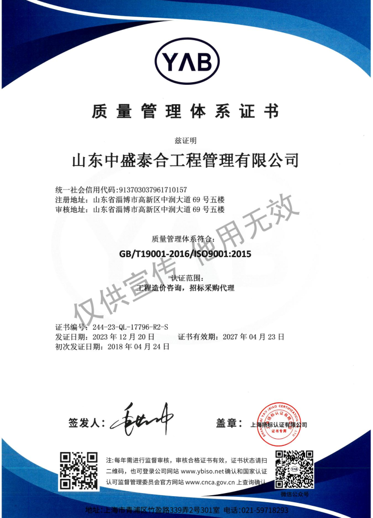 山東中盛泰合工程管理有限公司成立于2006年,經過多年發展與積累已成為山東省及區域內最具活力的工程造價專業咨詢機構與綜合性建設項目管理咨詢機構之一。公司是由國家住建部批準的全國工程造價咨詢甲級資質企業,山東省住建廳核定的山東省工程造價咨詢A級資信企業,中國建設工程造價管理協會會員單位,山東省工程建設標準造價協會理事單位、淄博市建設工程招標投標和標準造價協會副會長單位、山東省全過程工程咨詢服務試點企業。公司已通過ISO9001國際質量體系認證、ISO14001國際環境管理體系認證、ISO45001國際職業健康與安全管理體系認證,多年連續獲評省市行業先進單位、淄博市工程造價咨詢十佳企業,造價咨詢成果優秀企業;公司為山東省施工全過程造價控制規則等行業標準規范編撰單位,省建筑工程消耗量定額學習匯編資料編制單位等……